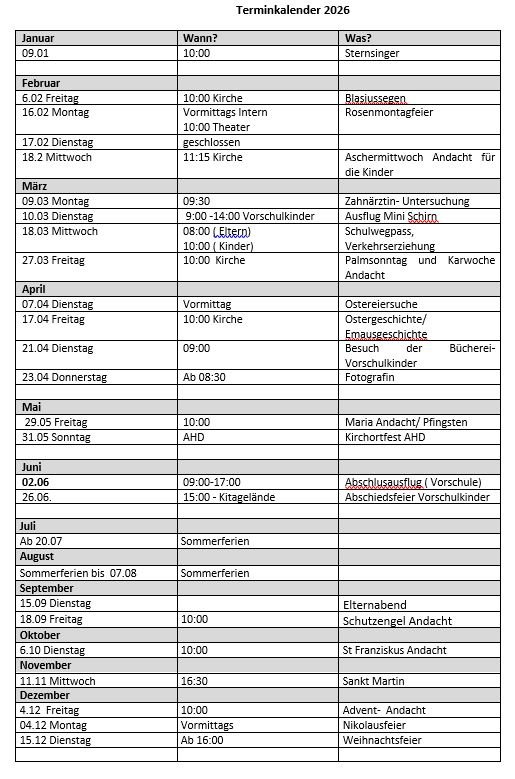Im Laufe des Jahres arbeiten wir eng mit der Pfarrei und der Gemeinde zusammen. Die Gemeindereferentin Rebecca  Hafner gestaltet regelmäßig Andachten für die Kinder, die in der Kirche stattfinden. Diese Andachten sind kindgerecht vorbereitet und vermitteln christliche Werte auf eine verständliche und einfühlsame Weise.